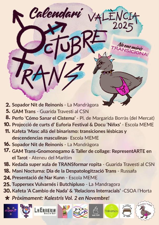 ¡Hola! Nos hace muchísima ilusión anunciaros la tremenda, increíble y apoteósica programación del Octubre Trans de València 2025 🤩